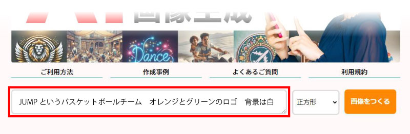 作成したいイメージを詳しく入力してください(形、色、素材、写真またはイラストなど)。