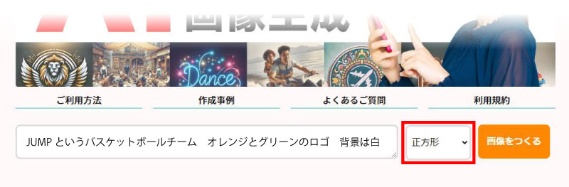 作成したい画像サイズを正方形、横長方形、縦長方形の中からお選びください。