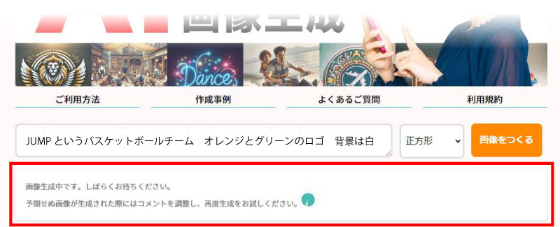 「画像をつくる」ボタンを押すと、画像生成がスタートします。