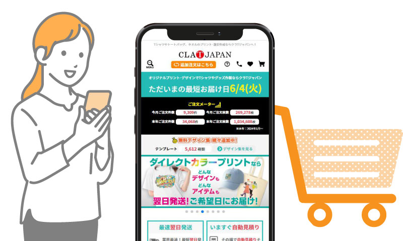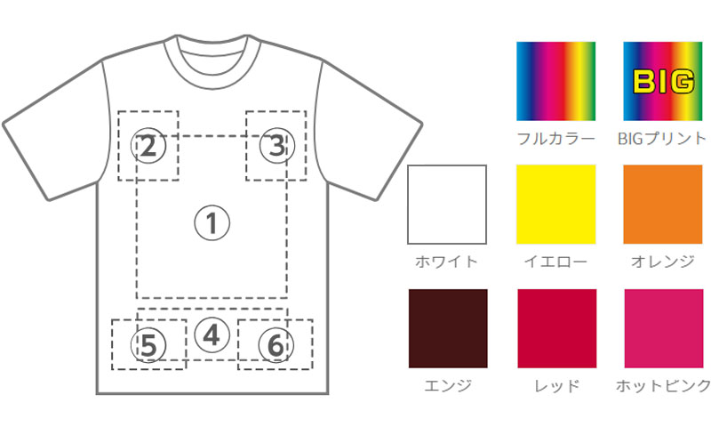 商品ページの「プリント注文・見積りへ進む」ボタンからお申込みいただき、商品カラーやサイズ、枚数を入力してください。