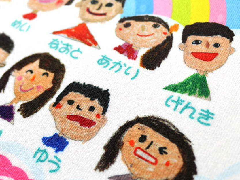タオルの柔らかい生地感を損なわずにフルカラーのデザインを再現できます。