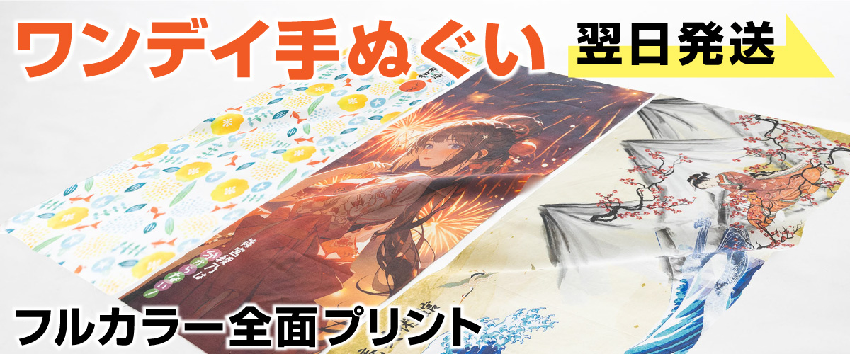 名入れタオルを1枚~最短翌日発送でお届けします!企業ロゴやキャラクター、企業名も色数無制限のフルカラーでプリントすることができます。