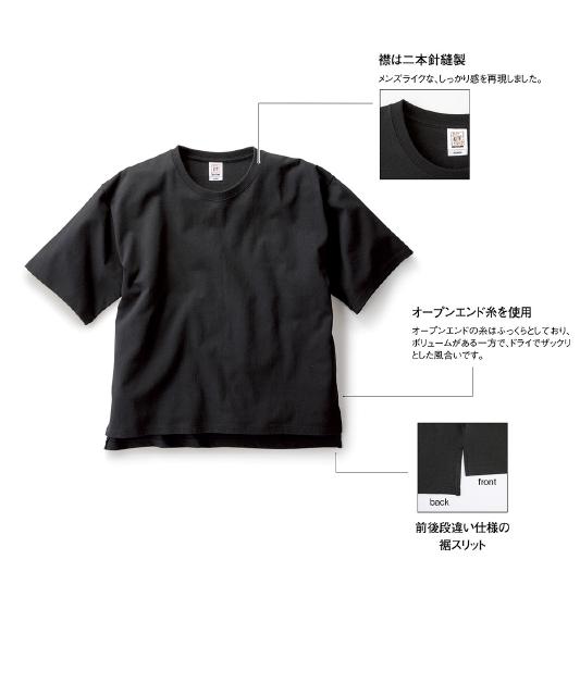 OE1401 | CROSS&STITCHデザイン性の高い、オープンエンドのビッグTシャツ。前後で丈の違いを出し、スリットが入っているので細見えします。イマドキのシルエットで男性ももちろん、メンズライクなファッションが好きな女性にもオススメの1枚です。