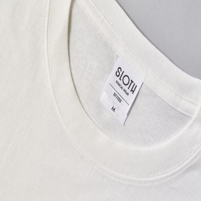 ST1103 | SLOTH地球と人に優しいオーガニックコットンTシャツ。丈夫で透けにくくも軽い、という良いとこどりの生地の厚さも、おすすめするポイントの一つです。その着やすさから、環境問題を身近に感じることができるでしょう。オーガニックコットン素材ならではの風合いが魅力で、ショップのオリジナルグッズにもおすすめです。環境に配慮したフェスやイベント物販にも最適で、あらゆるシーンで活躍してくれる1枚です。