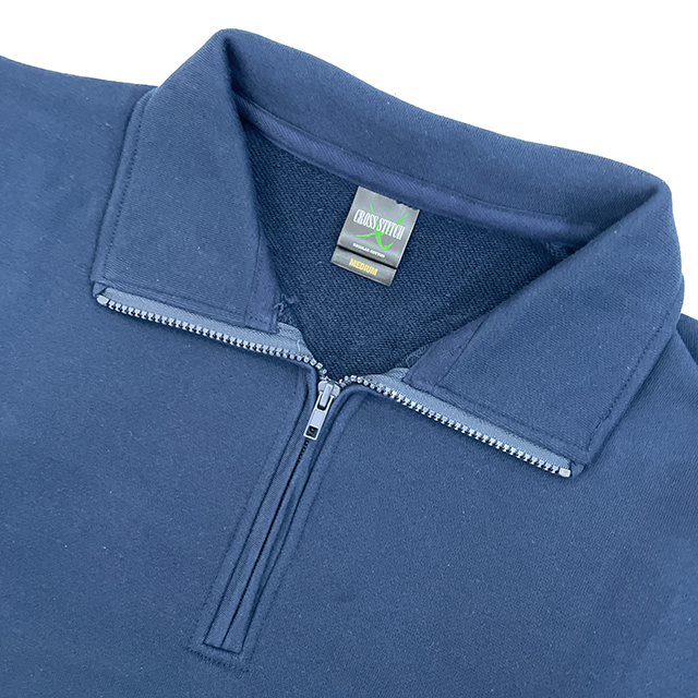 CS2260 | CROSS STITCHクォータージッププルオーバーのスウェットです。綿素材なので肌触りが柔らかく吸湿性、通気性にも優れています。袖口、裾のリブがしっかりしていて動きやすいので、お揃いのチームウェアだけでなく、制服や作業着として身体を動かす作業を伴う場合にも幅広くお使いいただけます。ポケットも付いているので機能性も抜群です。