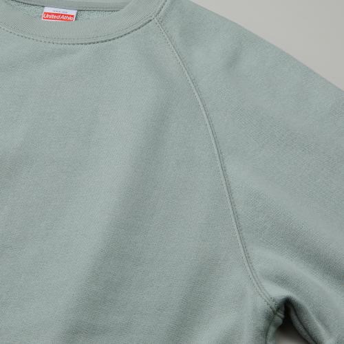 5195 | United Athleしっかりと肉厚な裏パイル生地ながらも着心地の良い柔らかさな半袖スウェット。ルーズフィットでストレスフリーな着用感。ラグランスリーブがカジュアルながらも品のある雰囲気を演出します。”リラックススウェットハーフパンツ”とあわせてレトロスポーツなセットアップコーデも可能です。