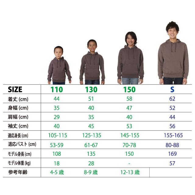XXLは+500円、XXXLは+720円別途料金がかかります。110~150はフードひも無し。※ライトピンク・オレンジ・ゴールド・サンドカーキ・配色カラーはSサイズ以上のサイズ展開です。XXXLはブラック、ミックスグレー、ネイビーのみ。