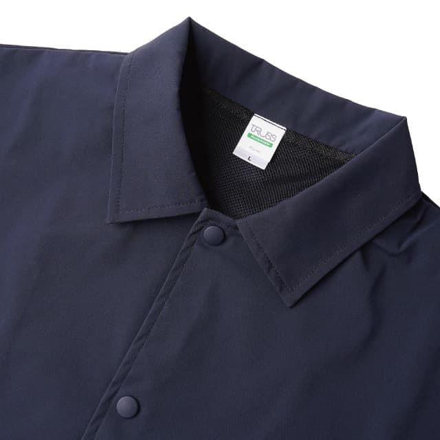 PCJ-940 | TRUSSリサイクルポリエステルを使用した、マットな質感のコーチジャケット。ボタンが目立たない仕様と、ゆったりとしたシルエットがおしゃれです。そで口が絞られているので肌寒い日も安心。ジャケット内側はメッシュ生地を施しているので張り付き感がなく快適にご着用いただけます。弱はっ水生地を採用し、少しの雨や雪なら吸収しにくくなっています。アパレル販売用やお仲間でのお揃い、自分だけのオリジナルジャケットにいかがですか。