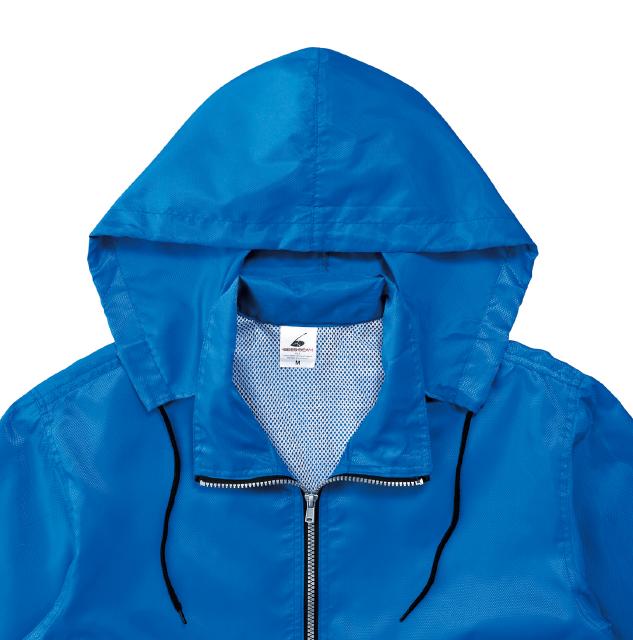 ポリエステル100% マイクロリップストップ 裏地:ポリエステル100% メッシュ 脇下:ポリエステル100% ストレッチリブ ファスナーはシングルスライダー フロントファスナー