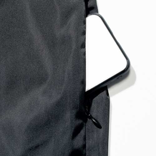 ポリエステル100% マイクロリップストップ 裏地:ポリエステル100% メッシュ 脇下:ポリエステル100% ストレッチリブ ファスナーはシングルスライダー フロントファスナー