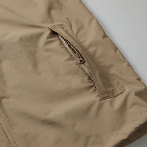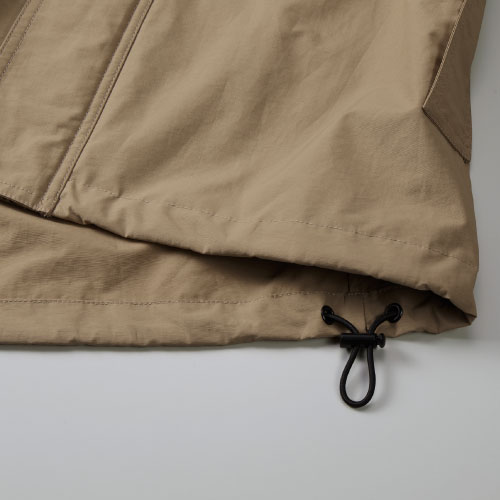 表地:ポリエステル100% 表面:フッ素系撥水 裏面:アクリルコーディング 裏地:ポリエステル100% 保温材:ポリエステル100% リブ:ポリエステル95%、ポリウレタン5%