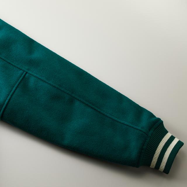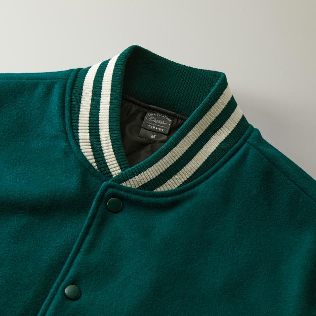 7494 | United Athleレトロな雰囲気たっぷりの、厚地の本格仕様のスタジャン。胸元にワンポイントのデザインを入れるだけで、オリジナルの本格スタジャンが出来上がります。ごわつきが強くなりすぎないよう、ウールとポリエステルを混合した柔らかくなめらかな手触りが魅力。スウェットやニットとレイヤードしても野暮ったくならない大きめのシルエットが今っぽい、高級感抜群のジャケットです。