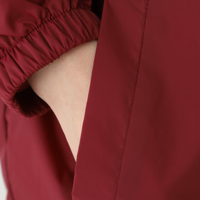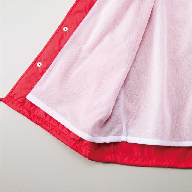 | 素材 | 表地:ナイロン100%(表面:フッ素系撥水、裏面:アクリルコーティング) 裏地(見頃):ポリエステル100%(トリコット起毛裏使い) 裏地(袖):ポリエステル100% |
