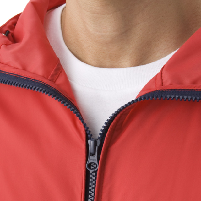 7025 | United Athle定番スタイルでありながら、ファスナーとの色組が印象的なデザインがさりげなくおしゃれなナイロン素材のフードジャケットです。普段着としても、プリントを揃えてユニフォームとしても着こなせるのが魅力です。