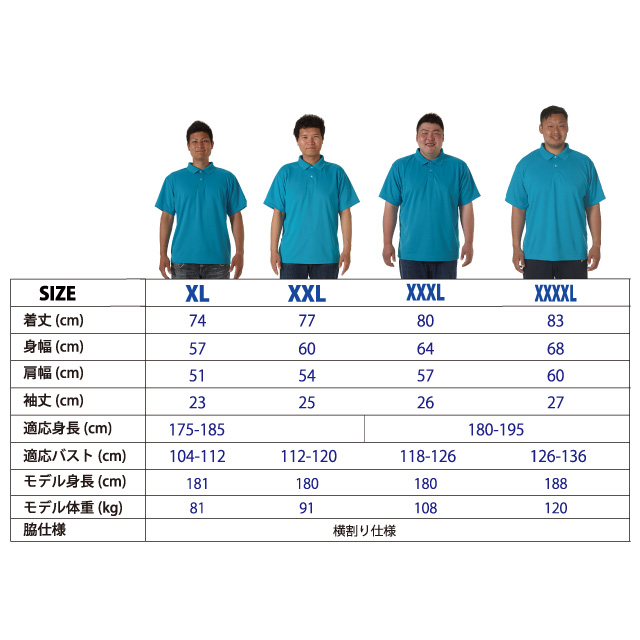 XXL、XXXL、XXXXLは+150円、別途料金がかかります。