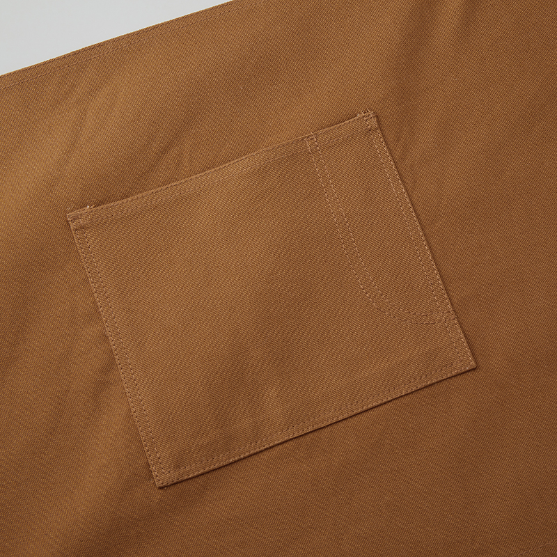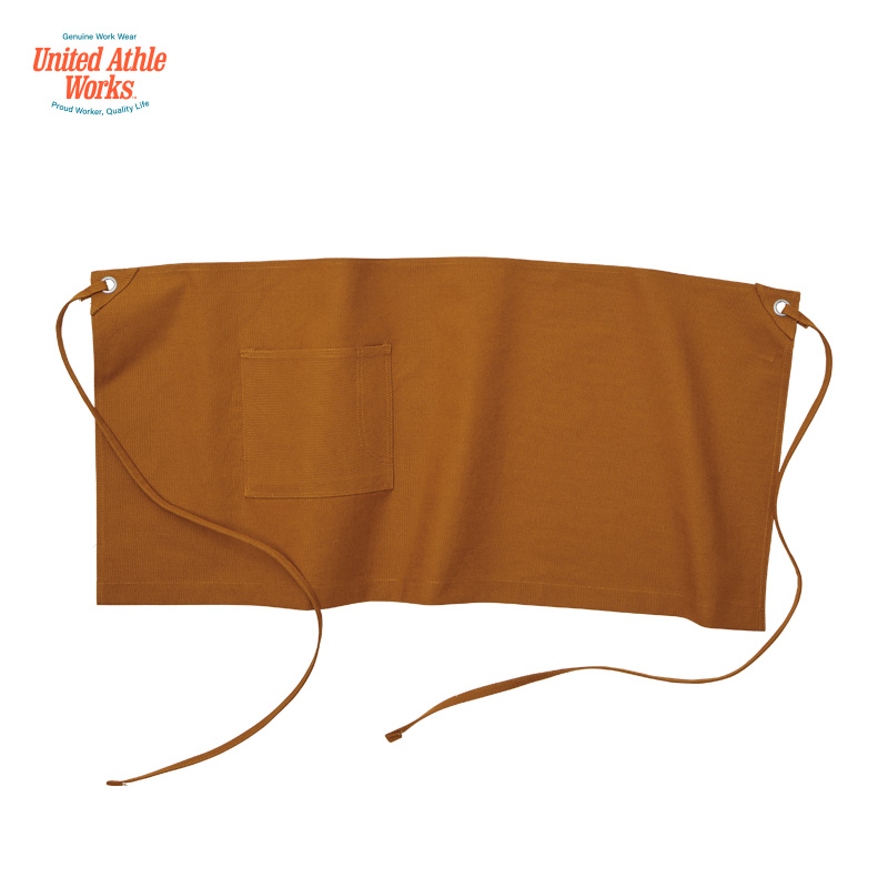 1383 | United Athle生地の段階で水洗い防縮加工をおこなっているため、形状変化や衣服への色移りも軽減。ワークに徹した丈夫な生地で余分な装飾が一切なく機能美溢れる1枚。たくさん使って、たくさん洗って、味が出るのを楽しめるヘヴィーキャンバス ショートエプロンです。