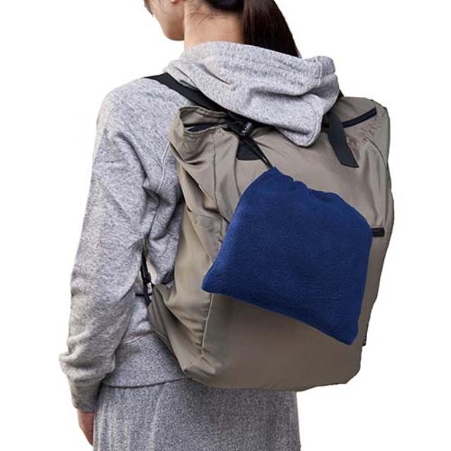 TR-1032 | MARKLESS STYLE収納用巾着がブランケットと一体化しているので、すぐにブランケットの出し入れできる機能的なアイテムです。屋外でのアウトドアシーンやスポーツ観戦、ライブなどのイベントの際でも荷物にならないコンパクトサイズにまとめることができます。収納時にはミニクッションとして使用でき、ゴム製の巾着紐をバッグにひっかけることで持ち運びも楽々です。ブランケット部分に刺繍ができますので、会社名やグループ名を入れてノベルティやグッズ販売にご活用いただけます。