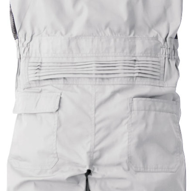 39017 | SOWA半そでタイプのつなぎで、両わき部分はメッシュ素材になっています。さらりとした肌触りの布地は、耐久性に優れ、しわになりにくくお手入れも簡単です。メッシュ部分は、熱や湿気を逃がすので暑い夏場でも快適に着用できます。また、腰部はジャバラになっており、体をスムーズに動かせます。企業ロゴを入れて、会社の作業着としていかがでしょうか。
