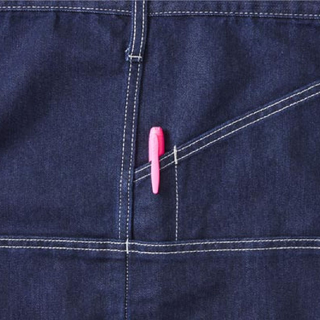 10110 | SOWAデニム生地でもゴワゴワ感が無く、肌触りがいい生地です。また、ポリエステルを使っているのでシワが入りにくいのも魅力の1つ。作りがしっかりしているので、飲食店やDIYなどのヘビーユーズにも応えてくれるショートエプロンです。あると便利なペン差しの他、ポケットが6つも付いているので、収納力はバツグン。動きにくさを軽減するセンタースリットもポイントです。