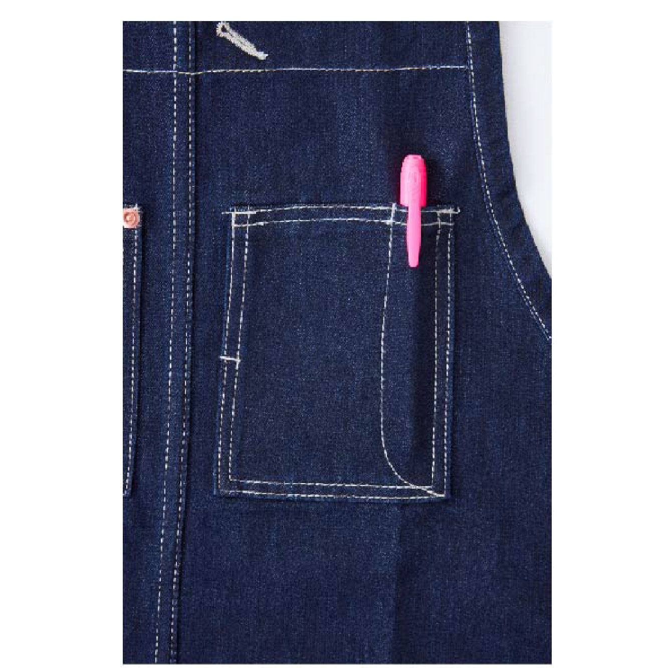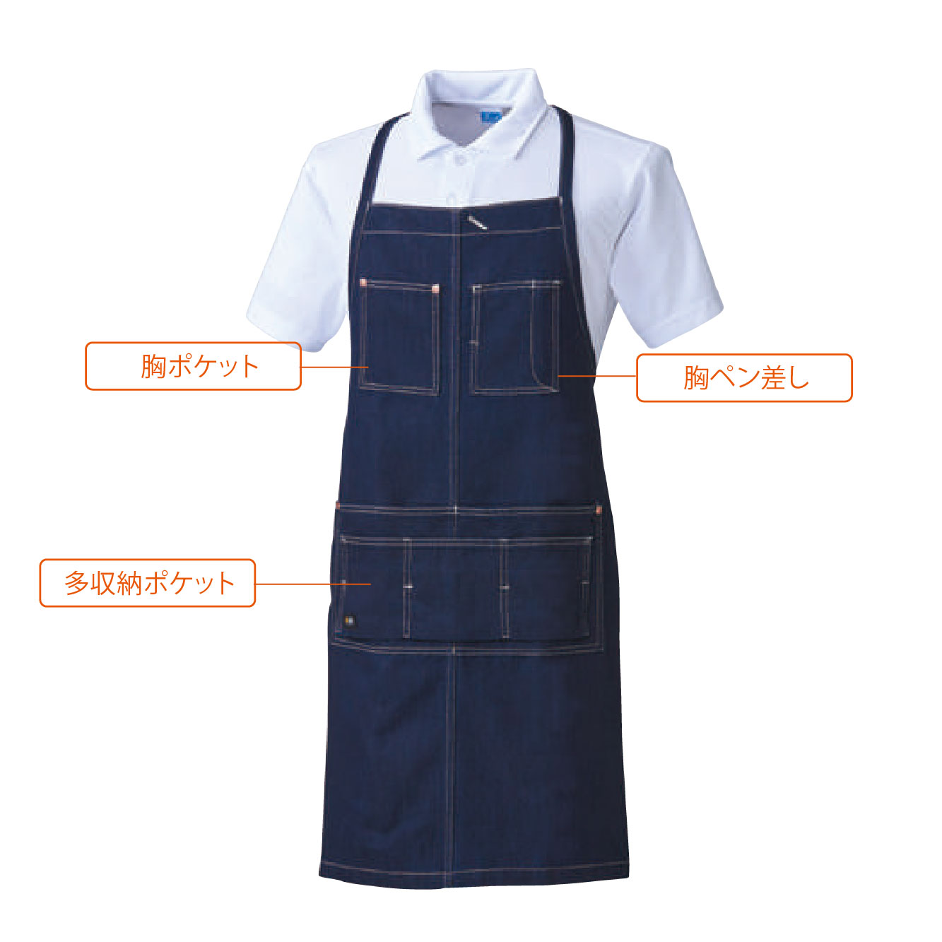 10111 | SOWAデニム生地でもゴワゴワ感が無く、肌触りがいい生地です。またポリエステルを使っているのでシワが入りにくいのも魅力の1つ。作りがしっかりしているので、飲食店やDIYだけでなく、仕事着としても使えるエプロンです。あると便利なペン差しの他、ポケットが6つも付いているので、収納力はバツグン。首と腰に紐を巻くタイプなので体にもフィットして動きやすいです。