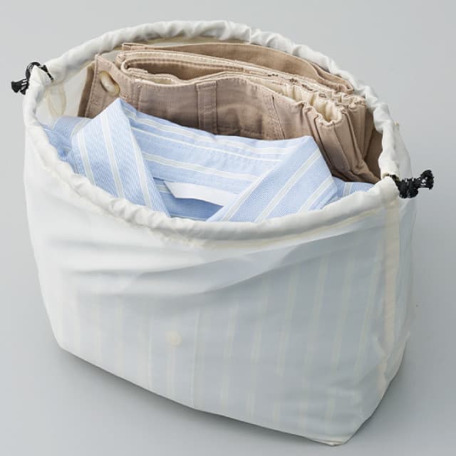 TP-0022 | MARKLESS STYLEしなやかでさらっとした手触りが特徴の、ポリエステル生地を使用した巾着ポーチ。カジュアルな印象を与えるコードひもがアクセントになっています。マチのある大きめサイズで収納力があるので、タオルやアメニティのほか、薄手の洋服なら1泊分をコンパクトに持ち運ぶこともできます。レジャーやアウトドア、旅行に持っていきたいポーチ。アウトドアショップやアパレルのお楽しみ袋に使っていただいてもおしゃれです。