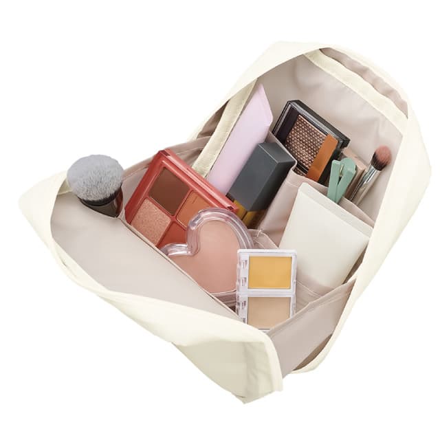 TP-0026 | MARKLESS STYLE収納力抜群!たっぷり入るポリエステルのポーチです。内側には計6個の収納ポケットがありポーチ内を気持ちよく整理できます。また、ポーチの口が大きく開き一目でどこに何があるかが分かりやすい仕様なので、文具や小物を入れての普段使いはもちろん、トラベルポーチとしてもぴったりです。サイズはロング型とスクエア型の2種類をご用意。しなやかで高級感のあるポリエステル生地を使用しているので、コスメブランドなどのノベルティや購入特典としてはもちろん、物販品としてもおすすめです。