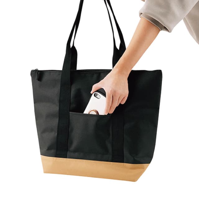 HK-0043 | favorist耐久性に優れ防水性能が高いPEVA(ポリエチレン酢酸ビニール)素材をバッグ内側に使用した、保冷保温に優れたトートバッグです。断熱効果のあるポリウレタンを生地の内側に挟み、保冷効果も安心な三層構造になっています。バッグ外側には鍵などの小物が取り出しやすいよう、ファスナー付きのポケットを付けました。バッグは3つの大きさをご用意。MサイズはA4ファイルがそのまま入り、2Lのペットボトルが立てても寝かせてもしっかり入る、ちょっとしたお買い物に便利なサイズです。