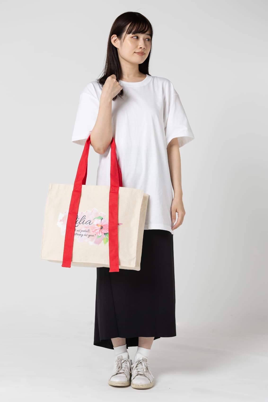 | 本体サイズ | 本体:約縦33×横42×マチ12 持ち手:約長さ57×幅4 |