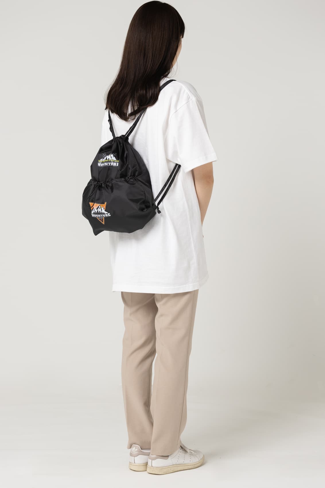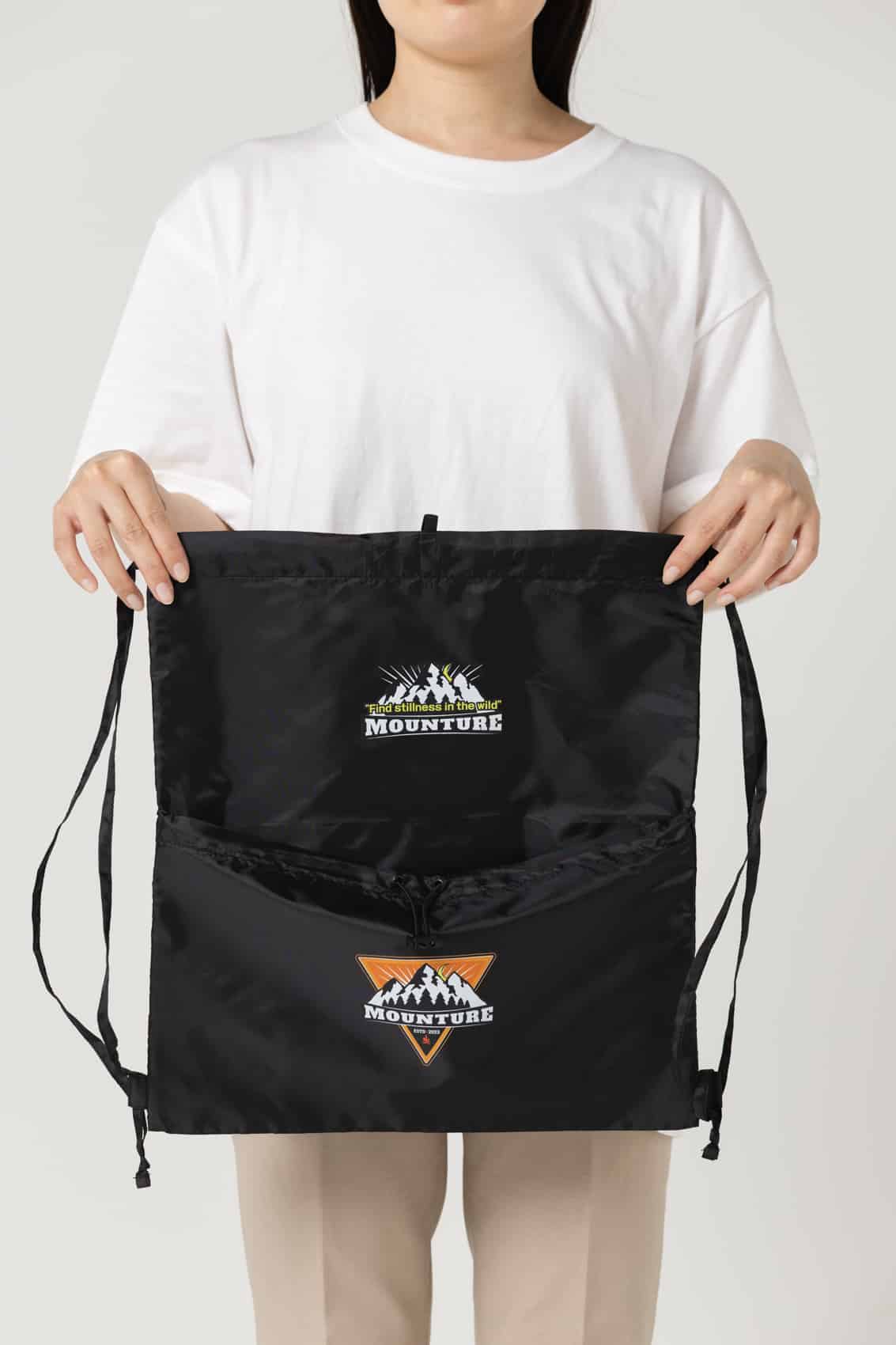 TR-1362 | MARKLESS STYLE薄手で軽い素材を使用したナップサックです。前ポケットにはアウトドア風のギャザーとストッパーのデザインを加え、おしゃれなアクセントになっています。肩ひもは結ぶ仕様になっているため、お好きな長さに調節が可能。また、こちらの商品は軽いので、非常用バッグやお出かけの際に携帯してサブバッグにもおすすめです。ペットボトルやタオルなどもしっかり入るサイズで、ジムバッグとして開店記念のノベルティとしても使えます。