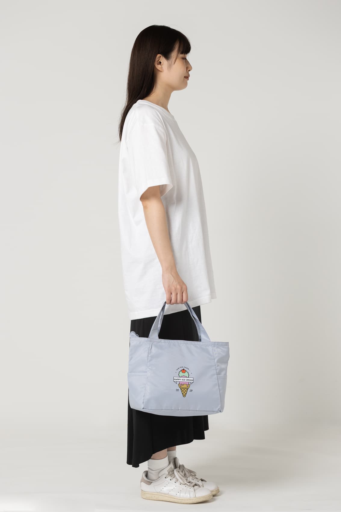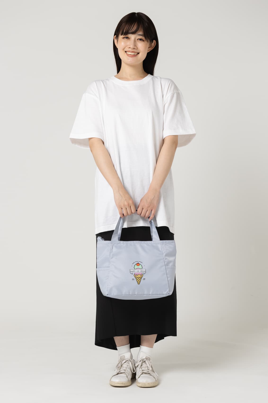 TR-1392 | MARKLESS STYLE使い勝手抜群!薄手で持ち運びやすいマルチ保冷トート。折りたたんでエコバッグのようにカバンにしまって、いつでも持ち歩くことができます。M・Lの2サイズ展開で、Mサイズのこちらはコンビニなどでのちょっとしたお買い物に便利なサイズです。両サイドのポケットにはスマートフォンや折りたたみ傘などが収納可能。バッグの口元はファスナー仕様で中身の落下を防ぐことができ、容量いっぱいに食材などを入れることができます。食品関係のノベルティやキャンペーン商材にもおすすめです。