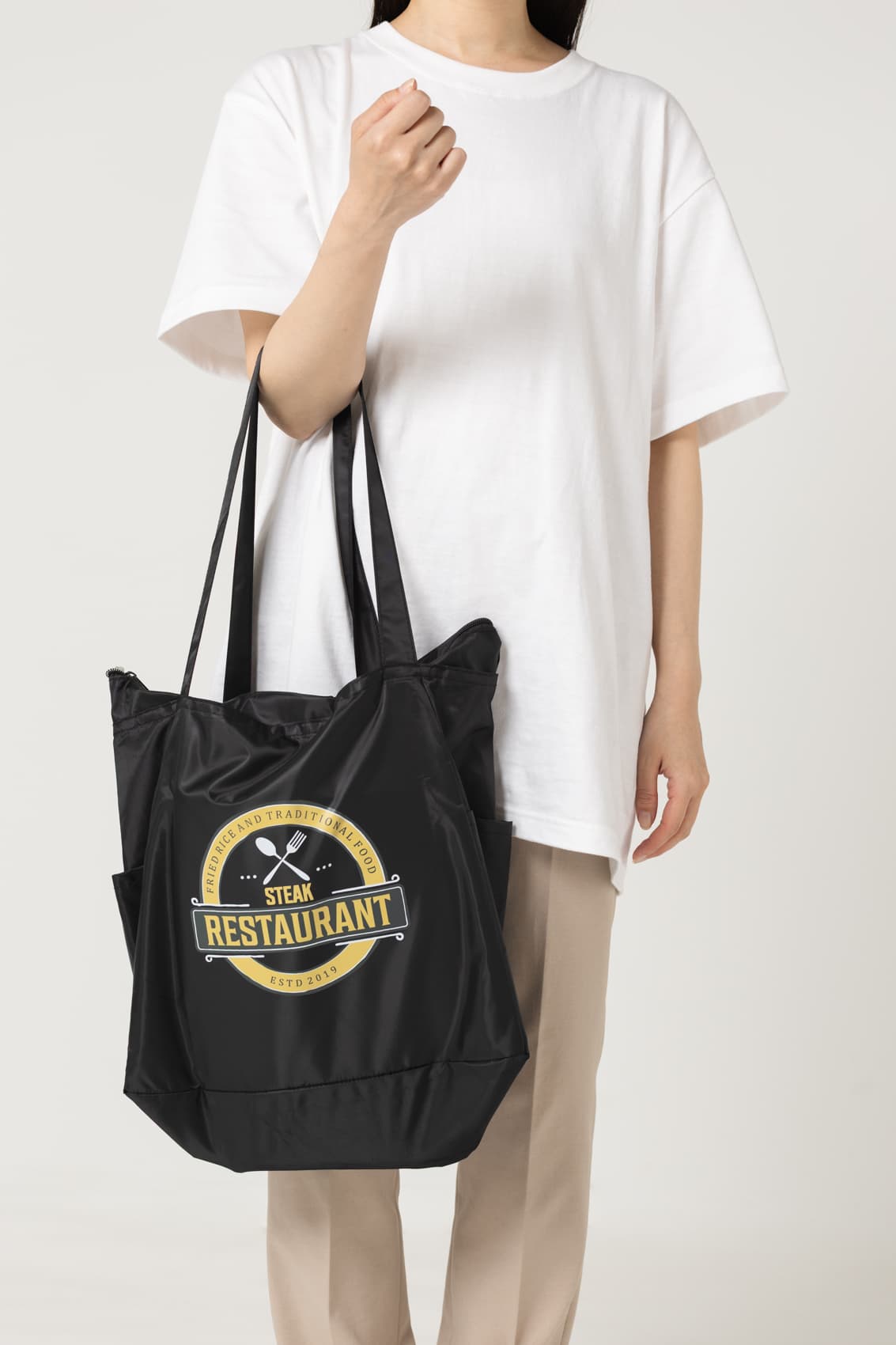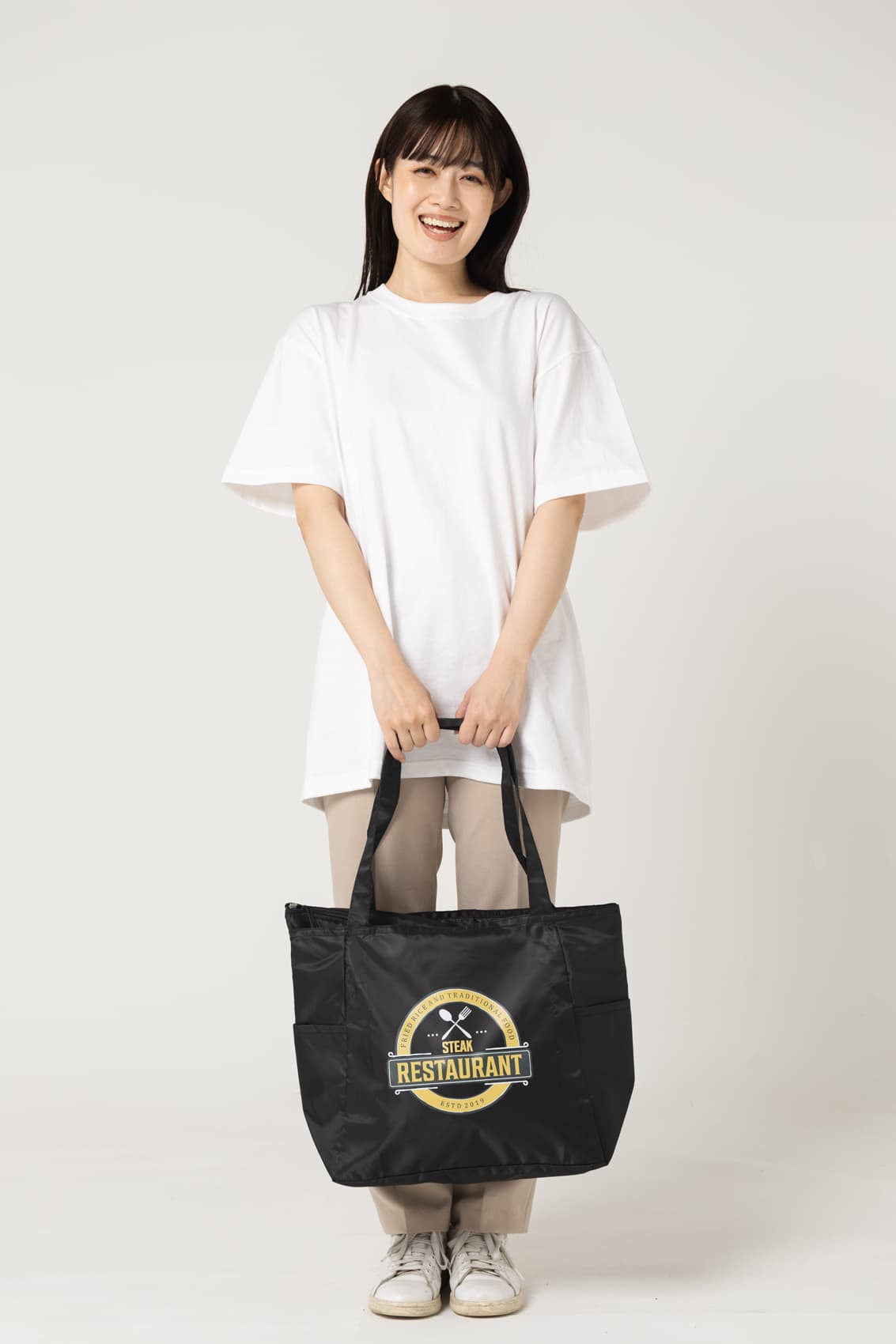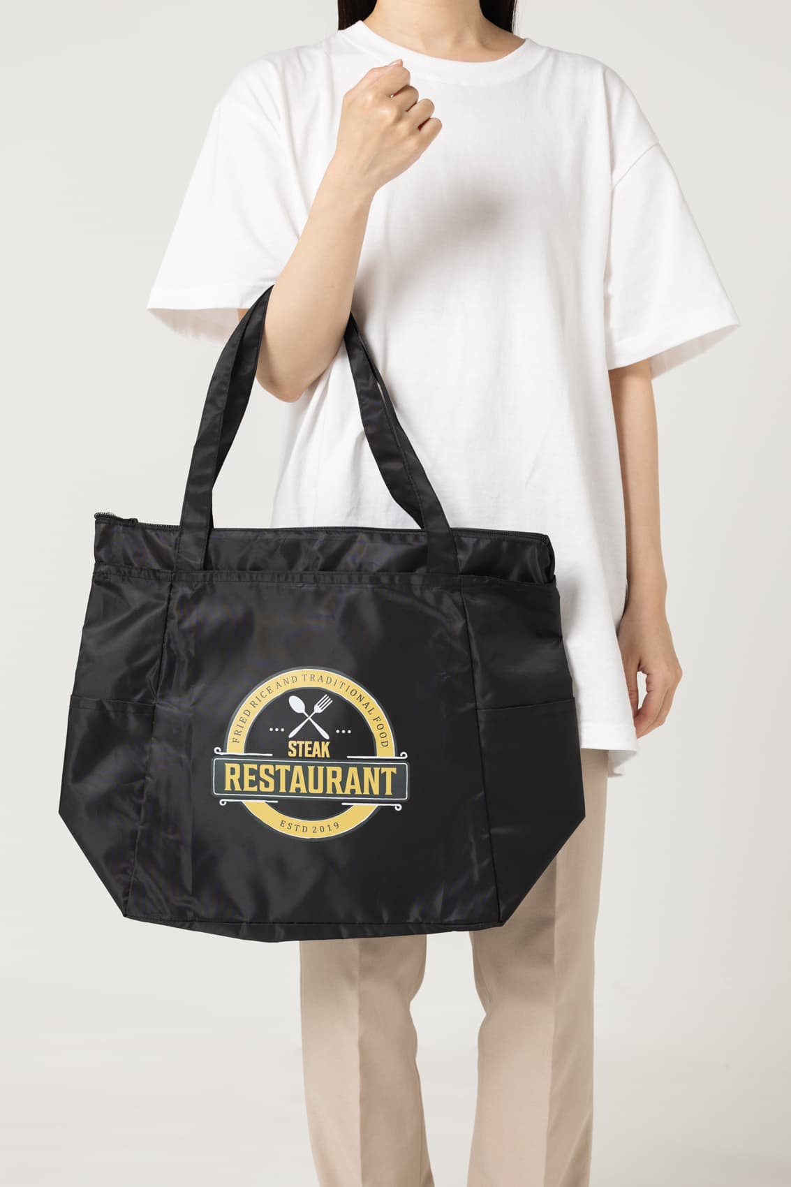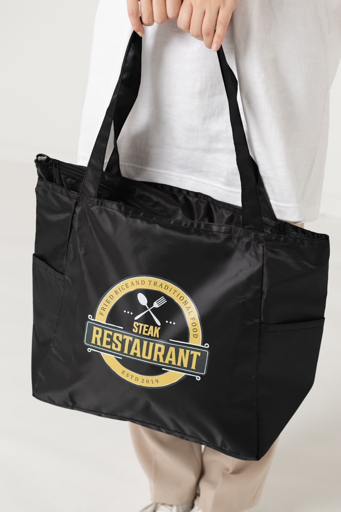 TR-1393 | MARKLESS STYLE使い勝手抜群な、薄手で持ち運びやすいマルチ保冷トート。ごわつかずしなやかな素材を使用しているため、すっきり折りたたむことができます。バッグ両サイドにはポケットが付いており、スマートフォンや折りたたみ傘などを入れることができます。口元はファスナー仕様で開閉がしやすく、たっぷり食材などを入れる事ができます。M・Lのサイズ展開で、こちらのLサイズは日々のお買い物や週末のまとめ買いにちょうど良いサイズになっています。食品メーカーやスーパーなどのノベルティやキャンペーン商材としてもおすすめです。