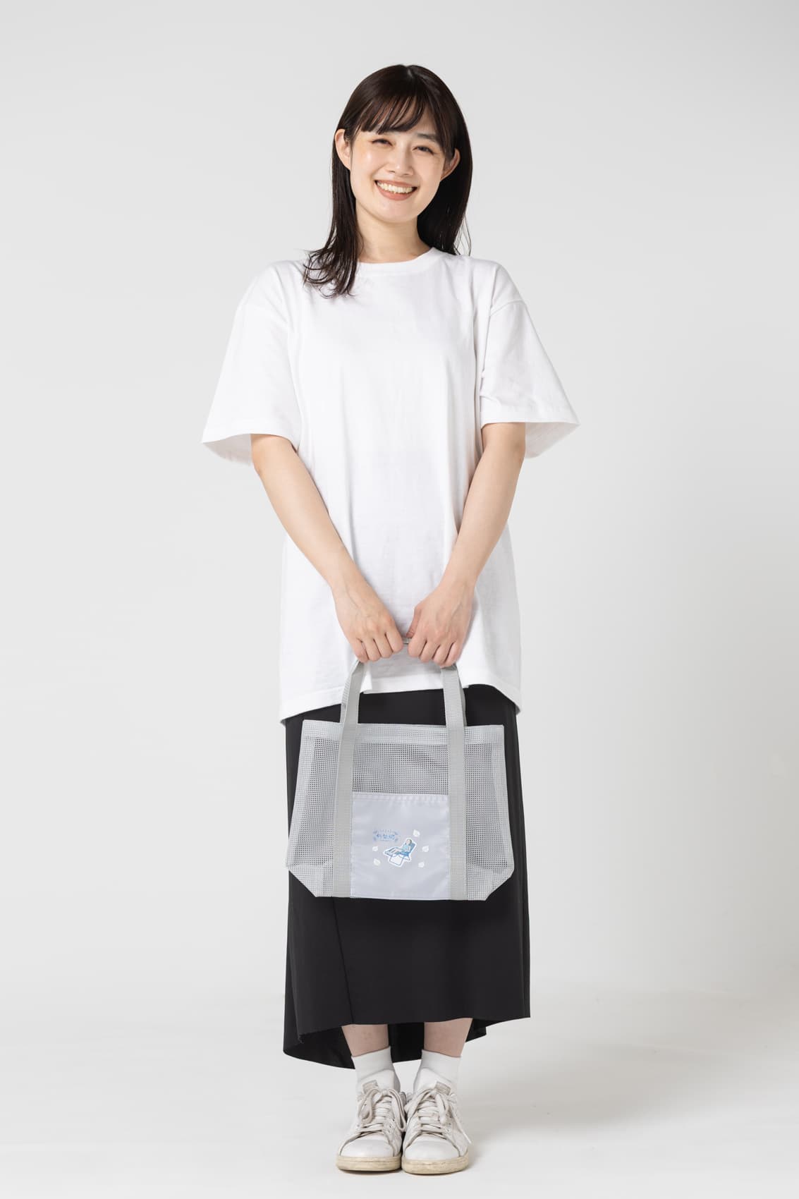 TR-1395 | MARKLESS STYLEメッシュ素材がポイントのトートバッグ。軽やかな素材でプールなどのレジャーや、人気のサウナバッグとしてもおすすめです。外ポケット付きでスマートフォンなどをいれておくのにも便利な仕様になっています。M・Lの2サイズ展開で、Mサイズはペットボトルが入る、お散歩やお子様とのちょっとしたお出かけにもちょうど良い大きさです。ポケット部分にプリントができますので、オリジナルのデザインを入れてお出かけしませんか。