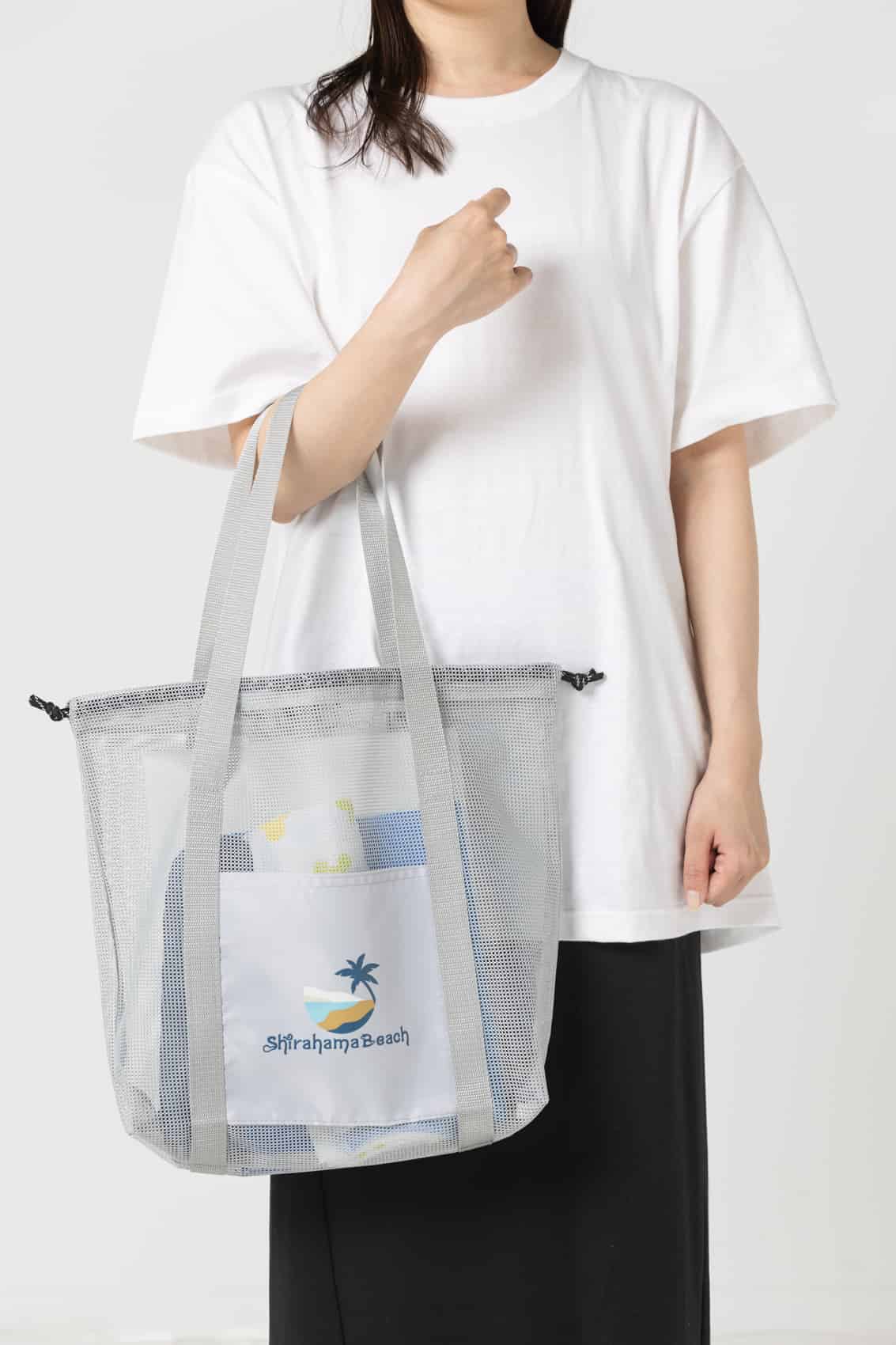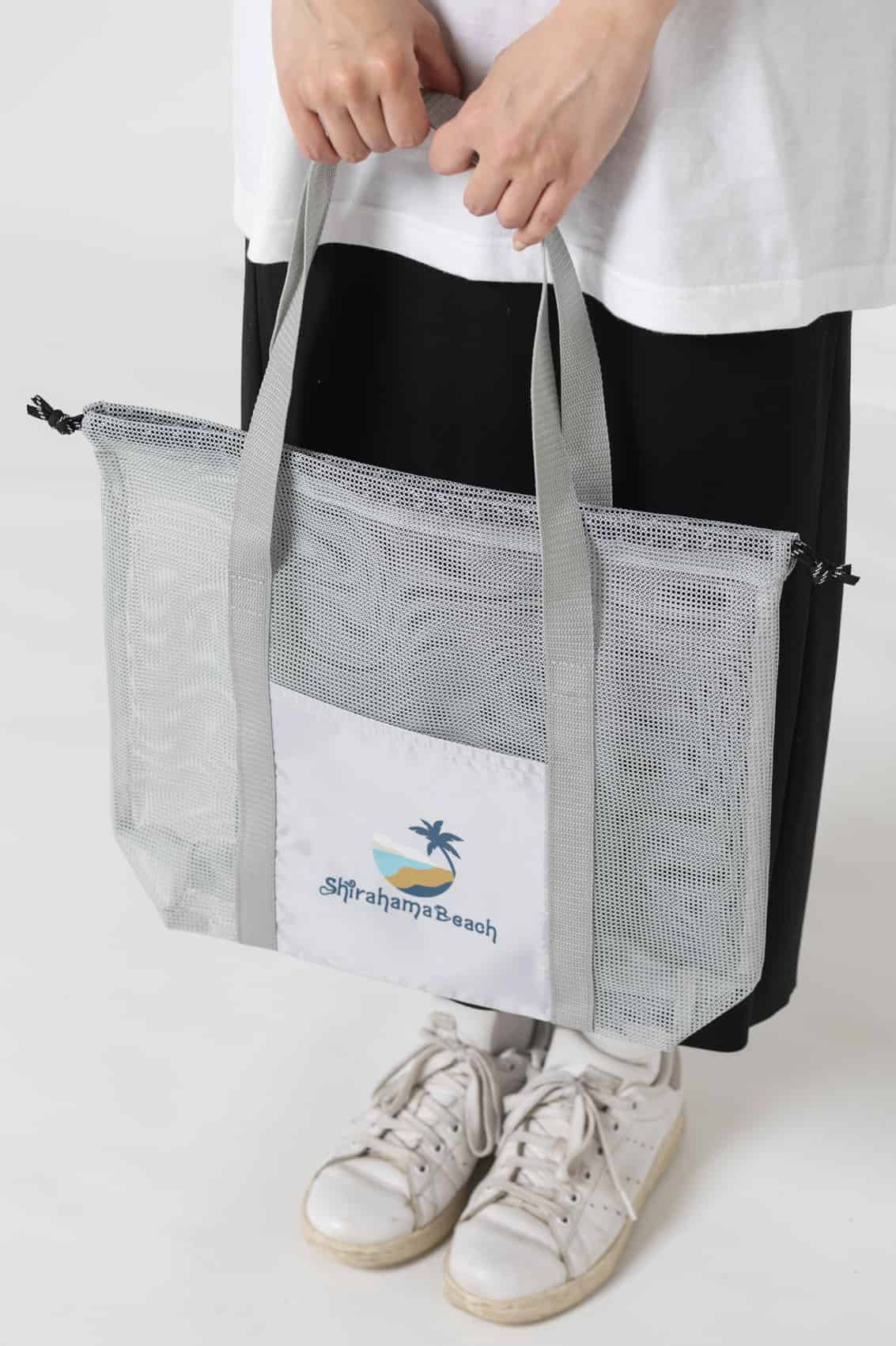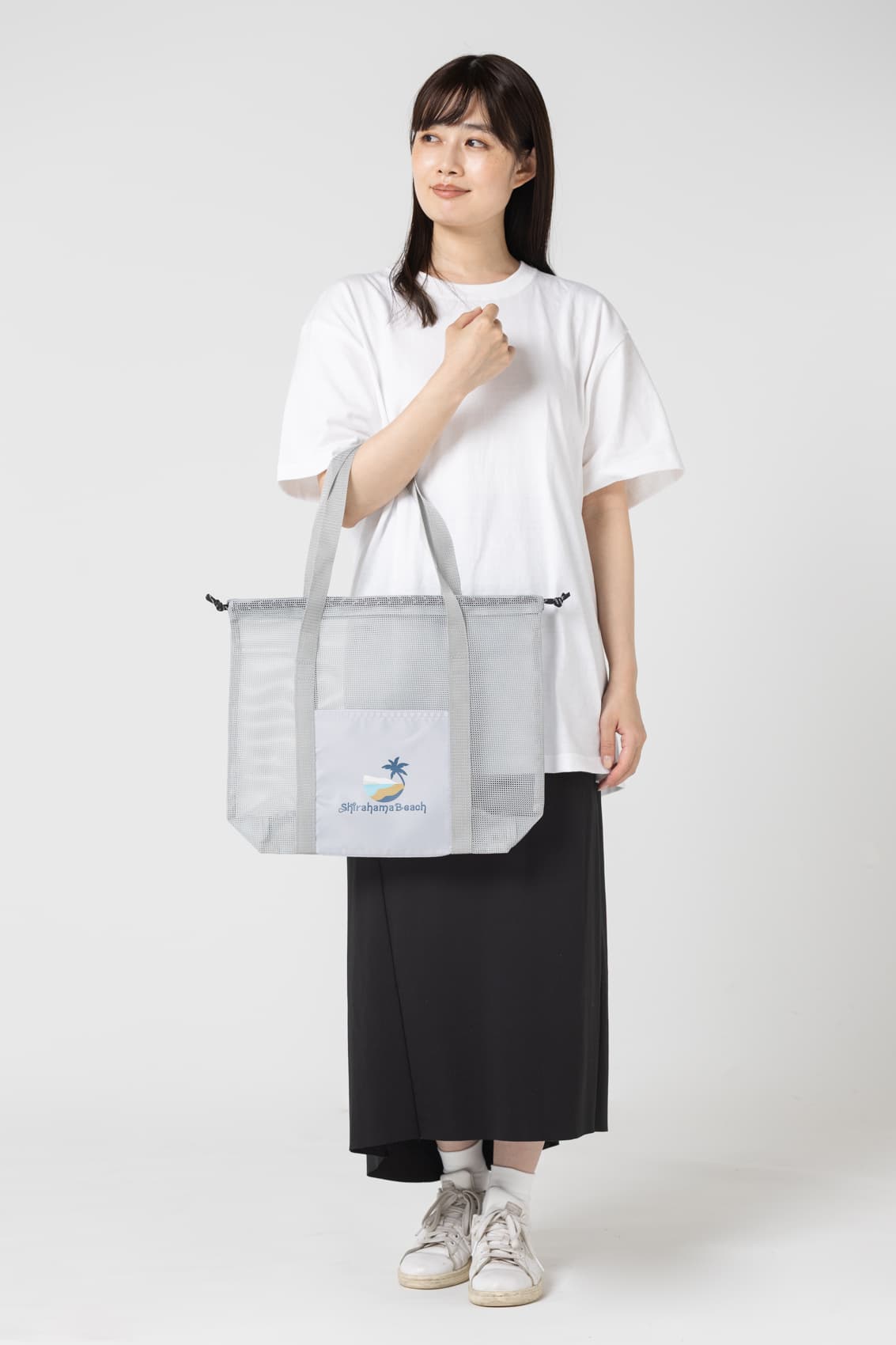 TR-1396 | MARKLESS STYLEスポーツやジム通いの際にも最適な、メッシュ素材がポイントのトートバッグです。A4が入る大きさで、口元が絞れる巾着タイプ。かがんだ時に中身が飛び出すことを防げます。外ポケット付きでスマートフォンなどをいれておくのにも便利です。M・Lの2サイズ展開で、Lサイズはフェイスタオルや着替え、500mLペットボトルなどを入れることができます。プールなどのレジャーシーンや、カジュアルな普段使い用としてもおすすめです。