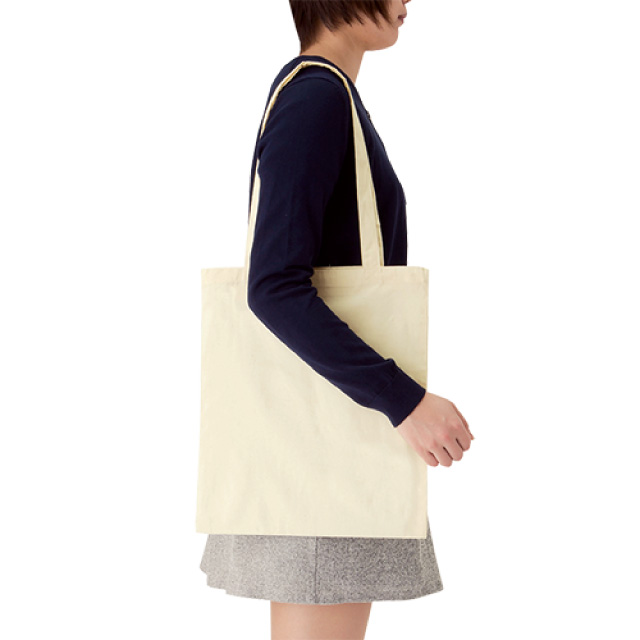 TR-0407 | MARKLESS STYLEロングタイプの持ち手で肩に掛けやすいトートバックです。肩に掛けても腕周りにゆとりがあるので窮屈に感じることもありません。A4サイズも余裕を持って入れることが出来るので荷物が多くても大丈夫。大きめに作られているので、イベント物販としても人気な商品です。学生さんなら友達とお揃いで作って、体育着や教材を入れてみてはいかがでしょうか。