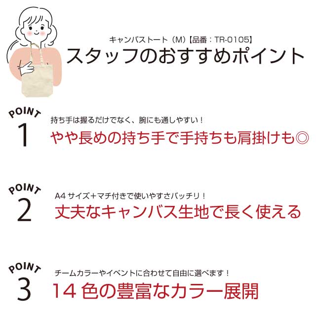 TR-0105 | MARKLESS STYLE肩かけ・手持ちの両方使える万能アイテムの紹介です。A4サイズのノートが入り、幅広い用途に使えます。そのままも可愛いですが、使い込んだ風合いの変化も楽しめるので、カフェやスイーツ店などショップのロゴやオリジナルのイラストをプリントすれば、風合いともぴったりです。おしゃれトート&エコバッグとしてお客様の目を引くこと間違いありません。