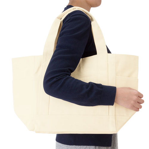 TR-0854 | MARKLESS STYLEシンプルなデザインで大容量なトートバックです。持ち手には強度を上げる縫い合わせを施してあり、厚い本やペットボトルなどを入れても安心です。丈夫で傷が付きにくい生地なので、イベントの販促物やライブのグッズなどにもお使いいただけます。小さいポケットがいくつもあり、スマートフォンやキーケース、ティッシュやハンカチなどの小物を分けて収納出来るので、荷物の整理が苦手な方にもおすすめしたい商品です。