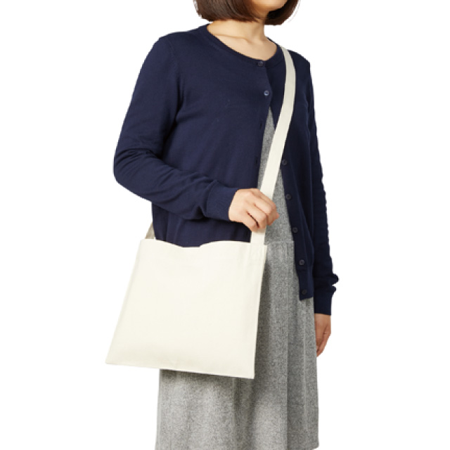 TR-0951 | MARKLESS STYLE肩へ斜め掛けの出来るショルダータイプのバッグです。手元にバッグがくるため出し入れがしやすく、ホックを止めれば中身の見える心配もありません。男女共に使用でき、ナチュラルカラーの生地にプリントすることで見た目もシンプルに使いやすいアイテムになります。