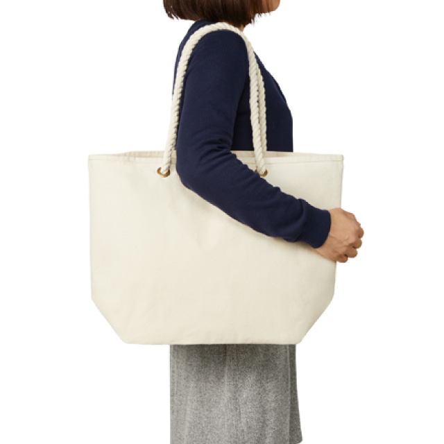 TR-0948 | MARKLESS STYLEロープハンドルが目を引く肩掛けにピッタリなサイズのバッグになります。参考書などを多く持ち歩く学生には使い勝手も良くとても喜ばれるアイテムです。ロゴやマークなどをプリントし記念品としてプレゼントするのもおすすめです。