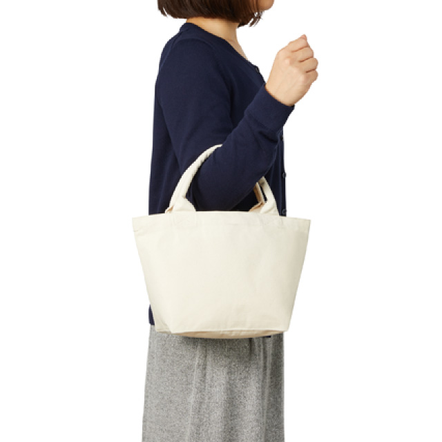 TR-0949 | MARKLESS STYLEシンプルでしっかりした印象のキャンバストートバッグです。小物や500mlのペットボトルを入れるのにちょうどいいサイズで、持ち手部分は芯が入っており重いものを入れても持ちやすく安心です。無地でも実用性に優れたバッグですが、オリジナルデザインを入れればお気に入りのバッグになることうけあいです。