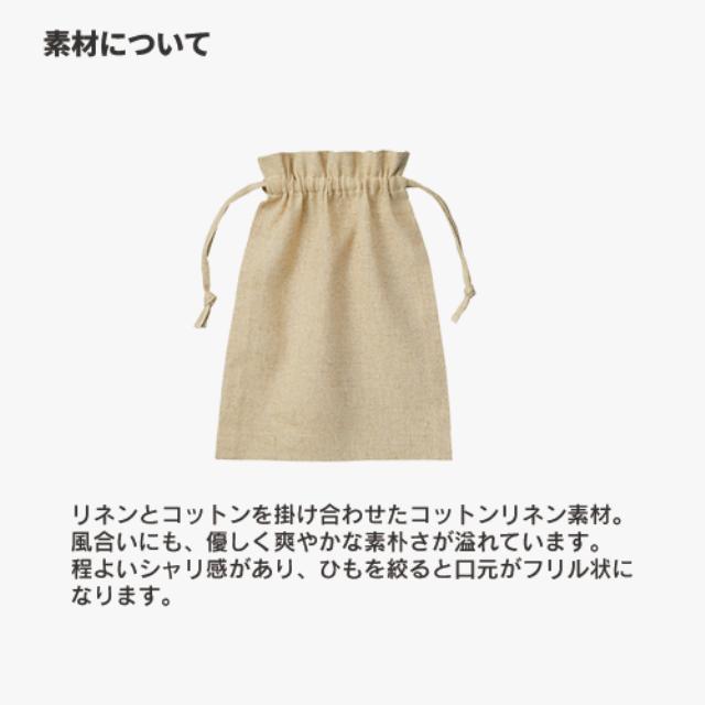 TR-0985 | MARKLESS STYLE可愛いサイズのミニ巾着。優しく爽やかな素朴さが感じられるコットンリネン素材です。口をしばると上部分がくしゅっとなり、可愛さが溢れ出します。小さめのSサイズはコスメのギフトセットや、お菓子の詰め合わせのパッケージとしてもご利用いただけます。またショップでの来店者様へプチギフトとしても◎。ショップ店内に何かを入れてインテリアとして飾っておくのも素敵です。