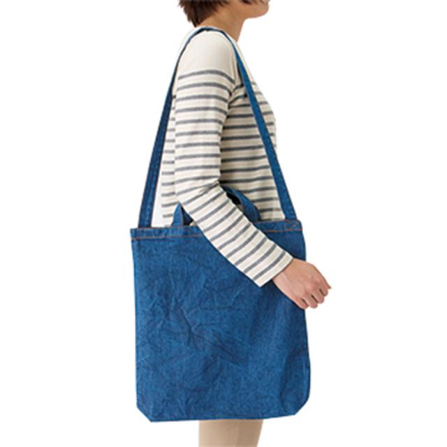 TR-0655 | MARKLESS STYLE使い込む程に、風合が増すフラットタイプのデニムトート。しなやかな生地で出来ているので、A4サイズが入る大容量ですが、軽くてかさばらないのも魅力的。手持ち・肩掛けの2WAY仕様!その日の気分で使い分けられます。学生さんの通学用やアパレル利用、アーティスト物販など幅広いシーンでご利用いただけます。お好みのデザインでオリジナルトートバッグの作成が可能です。