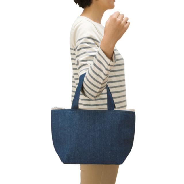 TR-0932 | MARKLESS STYLEいろんなコーデに合わせやすいデニム地のオシャレな保冷温バッグ。生地の厚みもしっかりあるので保温、保冷効果抜群!Sサイズでお弁当箱を入れるのにちょうどいい大きさです。マチもありますので、たくさん収容できます。バッグの口はファスナーを閉じて、保冷効果にも優れています。企業名やブランドのロゴを印刷して、オリジナルノベルティや物販品にもオススメです。