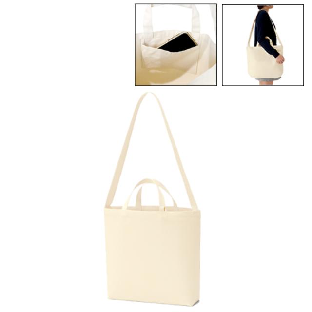TR-0984 | MARKLESS STYLEしっかりとしたコットン生地の2WAY仕様!シーンによって、肩掛け・手持ちで選べます。ひとつのバッグで使い方のバリエーションが増えるので使用頻度が高まりますね。A3サイズが収容できたり、スマホや鍵などの小物入れに便利なインナーポケット付きです。キーホルダーフックも付いているため、店舗物販やキャンペーンのノベルティなどでセット販売もオススメの商品です。お店の名入れやロゴなどを入れて、知名度UPさせましょう!