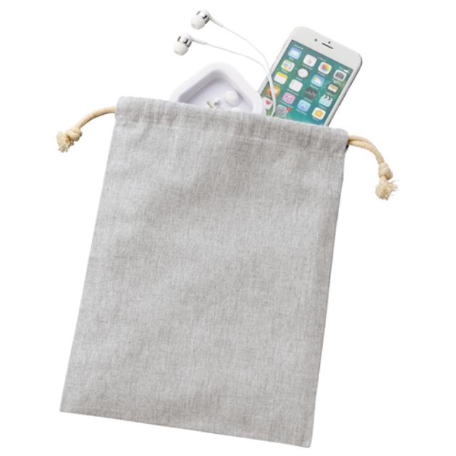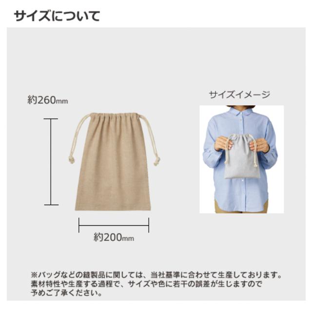 TR-0977 | MARKLESS STYLE一味違ったオシャレな巾着。布地を糸として再利用しているので、ナチュラル指向の方にもオススメ!普段使いにちょうどいい大きさで、外出時には重宝します。給食のコップ入れや旅行の時の小分けポーチにも抜群!バッグに入れてもかさばらず、様々な用途で使えるので、色違いで持ちたいアイテムですね。ショップのロゴや名入れが綺麗にプリント出来ますので、おしゃれなプチギフトやノベルティに最適です。