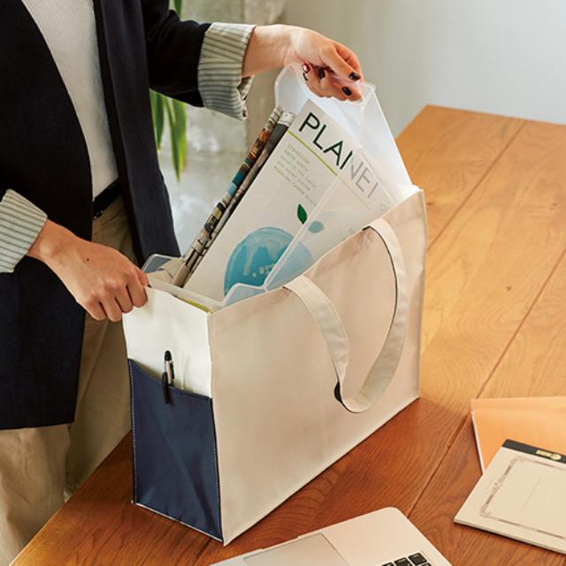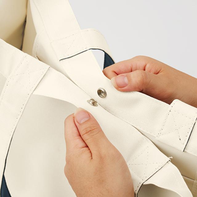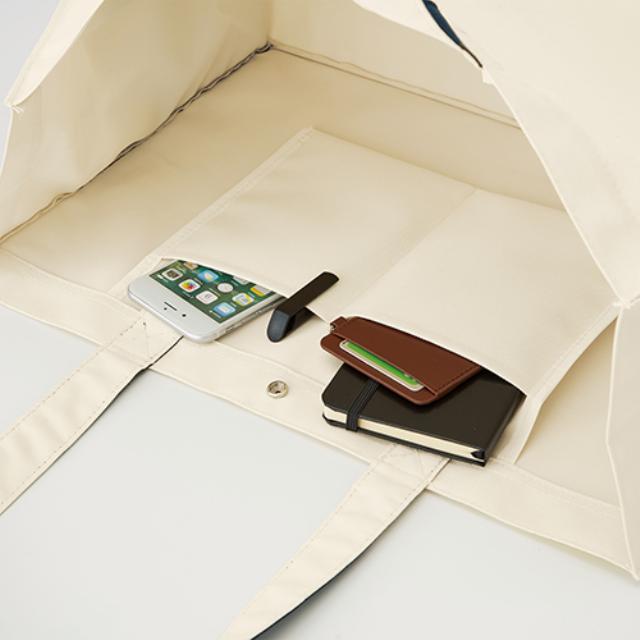TR-0994 | MARKLESS STYLEA4クリアボックスが収まる!マチがしっかりあるトートバッグです。本や雑誌をたくさん入れても、角がよれたり傷ついたりしにくい仕様です。インナーポケットでは、真ん中に刺繍があって小物を分けやすくなっていてとっても便利。外側両サイドのカラーポケットには、ペットボトルや折り畳み傘が入ります。口元は中身が飛び出さないホック付き。大判トートバッグは、マンガやアニメイベントに最適です。広い範囲で大きなプリントも可能なので、物販用でも人気が高くなりそうです。