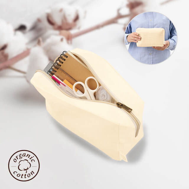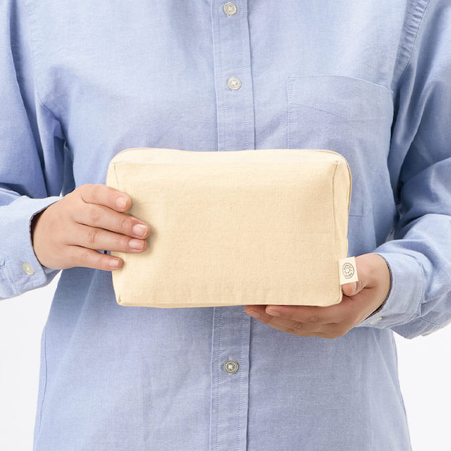 TR-1309オーガニックコットンを使用したスクエア型ポーチです。 ベーシックな使いやすい形状でマチもあり、しっかりと物を収納していただけます。 素材にはオーガニックコットンを使用しているため、特有のやわらかな風合いも魅力です。 企業やブランドロゴをのせたノベルティや、 アーティストやキャラクターグッズなどの物販品まで幅広くご活用いただけます。