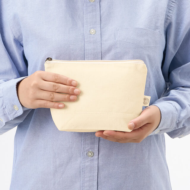 TR-1310 | MARKLESS STYLEオーガニックコットンを使用した人気の舟形ポーチです。 ほどよいサイズ感でマチもあるため、コスメや小物入れにぴったりです。 素材にはオーガニックコットンを使用しており、やわらかな風合いを楽しめます。