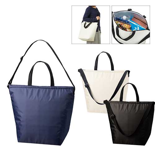 TR-1104 | MARKLESS STYLE両手を空けることのできるショルダータイプの保冷バッグ。ポリエステル生地を使用したベーシックな保冷バッグです。2Lのペットボトルが入る大容量サイズで荷物が多くなるアウトドアやお買い物時に便利です。アジャスターパーツが付いており、お好みの長さに調節可能となっております。スポーツジムなどの入会記念品や株主優待品など、幅広くご提案頂ける商品です。