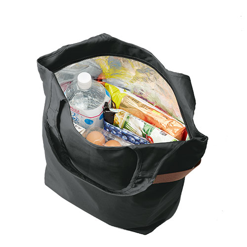 TR-1095 | MARKLESS STYLEクルリトシリーズに保冷タイプのマルシェバッグが登場しました。クルリトの特徴であるゴムがついており、未使用時は折りたたんでコンパクトに持ち運ぶことができます。内側のアルミがしっかりしているので、物を入れるときも自立して入れやすく、2Lペットボトルや牛乳パックが固定できるゴムバンドが付いております。口元はファスナー仕様となっているので、中身が飛び出る心配がありません。また、外側に付いているベルトは車からの荷降ろしや少し手を開けたい時に、傘等を引っ掛けることが出来るなど、機能性にこだわった保冷バッグです。キャンペーンの景品やノベルティにお勧めです。