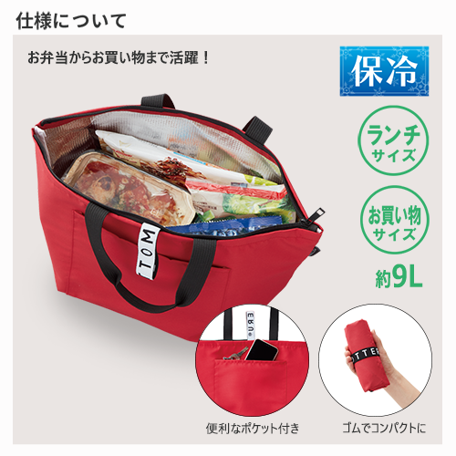 TR-1100 | MARKLESS STYLEペットボトルなどから再生された生地を使用した環境にやさしいクーラーバッグです。クルリトシリーズの特徴であるゴムが付いており、折りたたんでコンパクトに持ち運ぶことが出来ます。冷凍食品などをそのまま入れることができるようにマチを広く設計しており、500ml缶を8本収納できるサイズとなっております。お弁当入れからちょっとしたお買い物まで、さまざまなシーンで活躍するバッグですので、プレゼント品やスーパーでの買い物用エコバッグなど幅広くご利用頂けます。